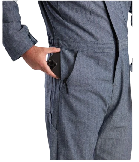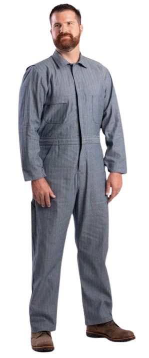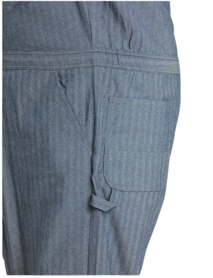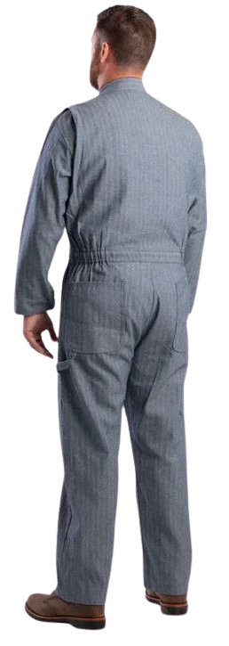 Introducing the Heritage Fisher Stripe Unlined Coverall! With adjustable snaps, elastic waistband, and reinforced stress points, this coverall is perfect for a hard day’s work. It also includes multiple pockets and a hammer loop for easy access to your tools.