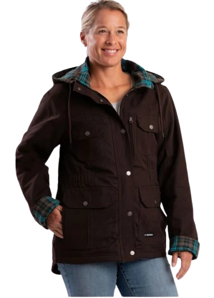 Introducing the Women’s Softstone Duck Barn Coat, with five functional pockets for optimal storage, a zip-off hood and extended back for added warmth, triple-needle stitched seams for durability, and snap-close vents for extra mobility. Plus, an elasticized waist for the perfect feminine fit.