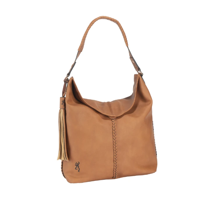 The Ashley Concealed Carry Handbag for Ladies is made of premium faux leather with a magnetic closure, braided details, fringe tassels, and subtle Browning branding. This purse has a wide base that provides additional stability to support the weight of the firearm. Multiple inner pockets provide organization for your cell phone and other necessities.