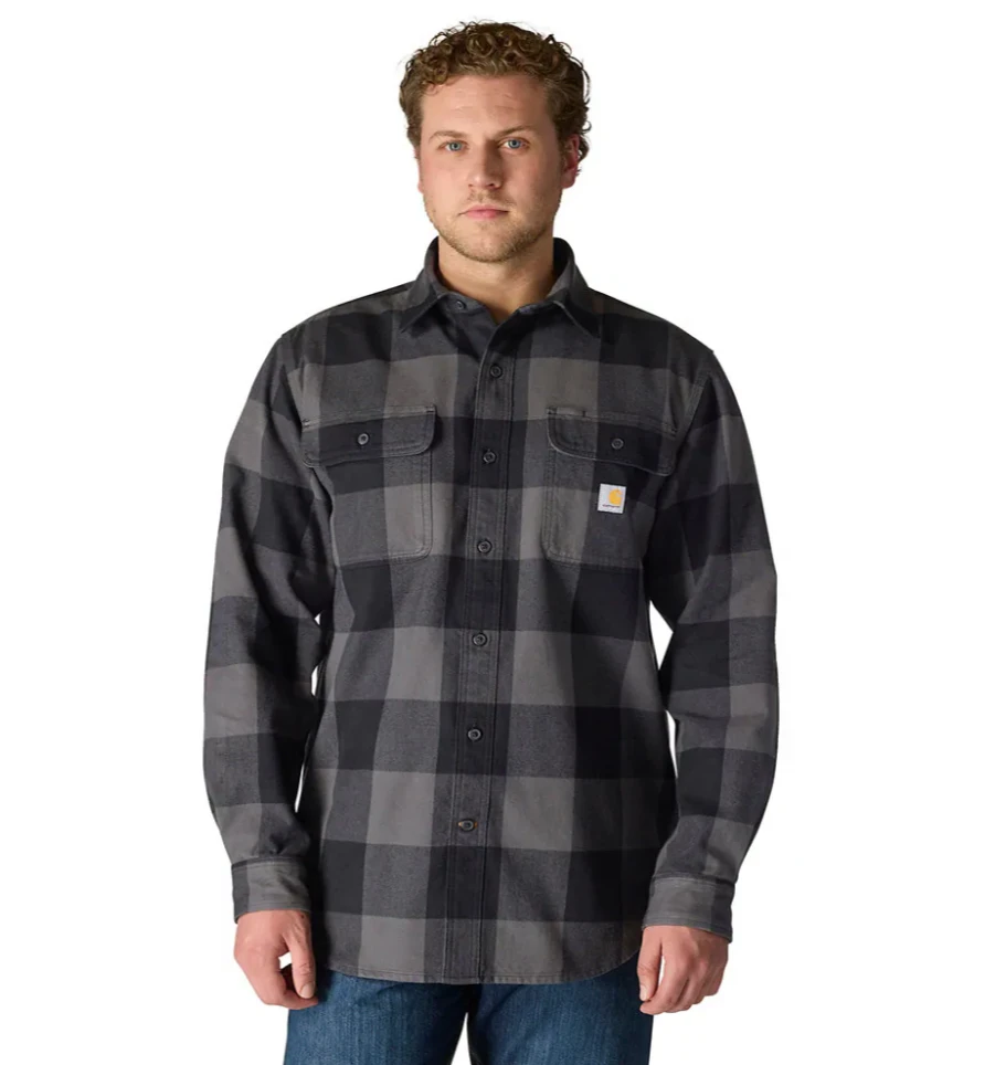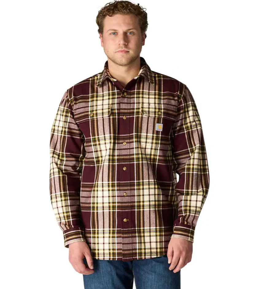 Built for cooler weather and rugged days, this men’s Carhartt flannel shirt features a heavyweight cotton flannel with a brushed finish for a soft feel. A loose fit allows for easy layering and plenty of room to move.