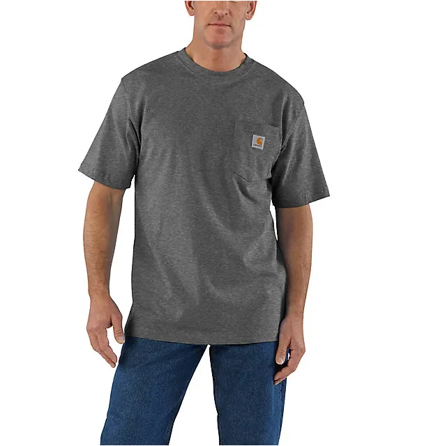 Carhartt’s pocket t-shirt debuted in 1992, and its rugged cotton design and clean looks made it a fast favorite among the hard-working folks who pulled it on. Though decades and trends have come and gone, there’s a reason the K87 remains a classic. This men’s t-shirt is made with heavyweight cotton built to handle tough days on the job. It has an loose fit that gives you room to move and a soft feel that only gets better with time.
