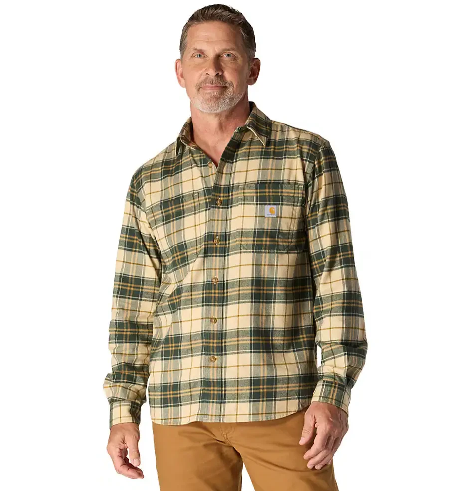 Made to be worn tucked or untucked, this men’s plaid flannel shirt jacket features a midweight cotton blend with just the right amount of stretch for an unrestricted range of motion. A relaxed fit allows for easy layering and a natural range of motion.