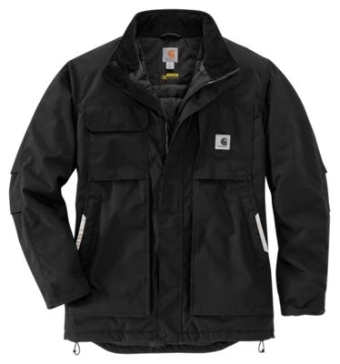 This men’s Carhartt coat gives you durable warmth without restricting mobility. Made with an insulated Cordura® shell that fights off cold, wind, abrasion, and light rain. Includes reflective details, extra flex where you need it, and all the pockets you could ask for. Features Full Swing® Technology for stretch across the shoulders, arms that move free without the jacket riding up, and a bigger bend in the elbows.
