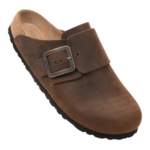 Introducing the Dakota LC1426 from Aerothotic, a timeless clog that combines style with comfort. Made from breathable oiled leather, it gets better with every wear, ensuring each pair feels uniquely yours. The supportive cork footbed molds to your foot for a customized fit, while the raised toe bar encourages natural movement. With a flexible EVA outsole for lightweight cushioning and moisture-wicking dual-layer jute, the Dakota is ready for any adventure. Step out in comfort and confidence!