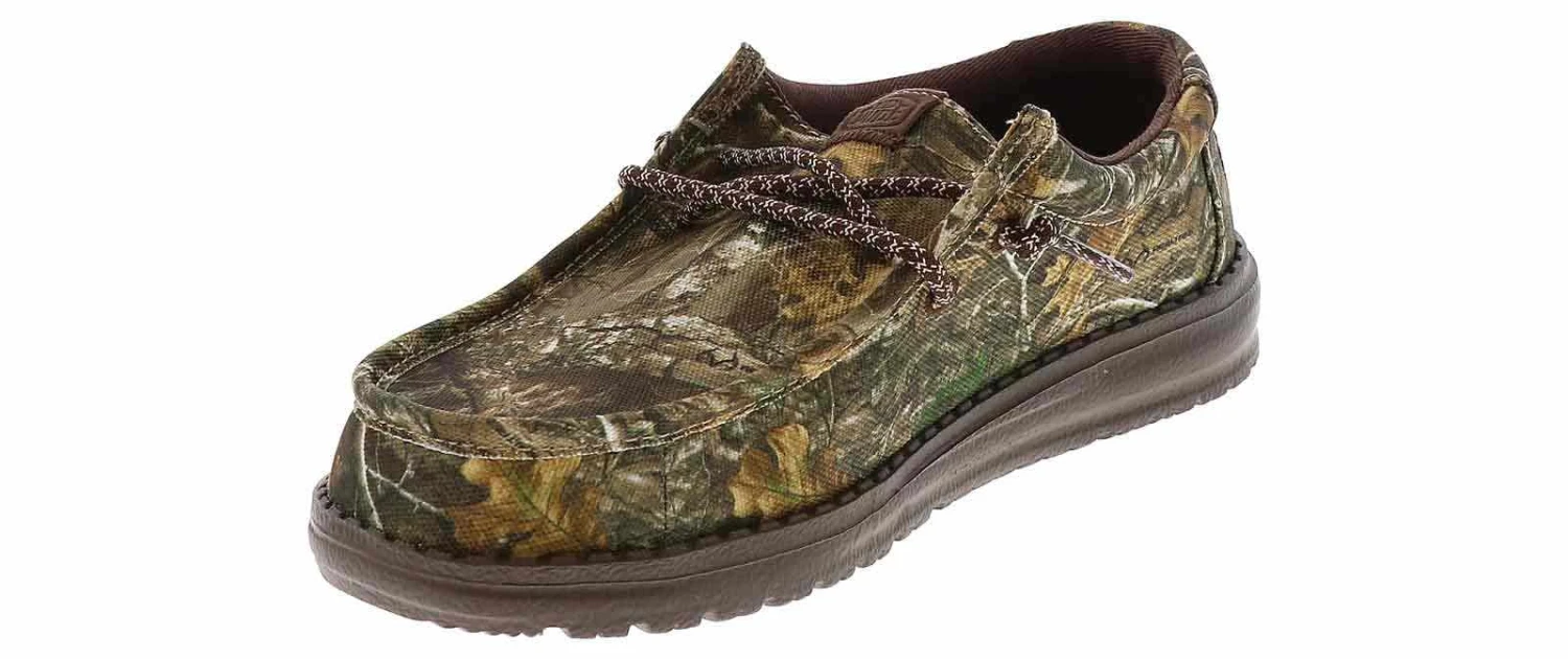 The Hey Dude Boys’ Wally Realtree Edge Shoes combine rugged outdoor style with everyday comfort. Featuring the classic Realtree Edge® camouflage pattern, these lightweight slip-ons are designed for young adventurers. The easy-on system with elastic laces ensures a secure fit, while the cushioned insole and flexible outsole provide all-day comfort.