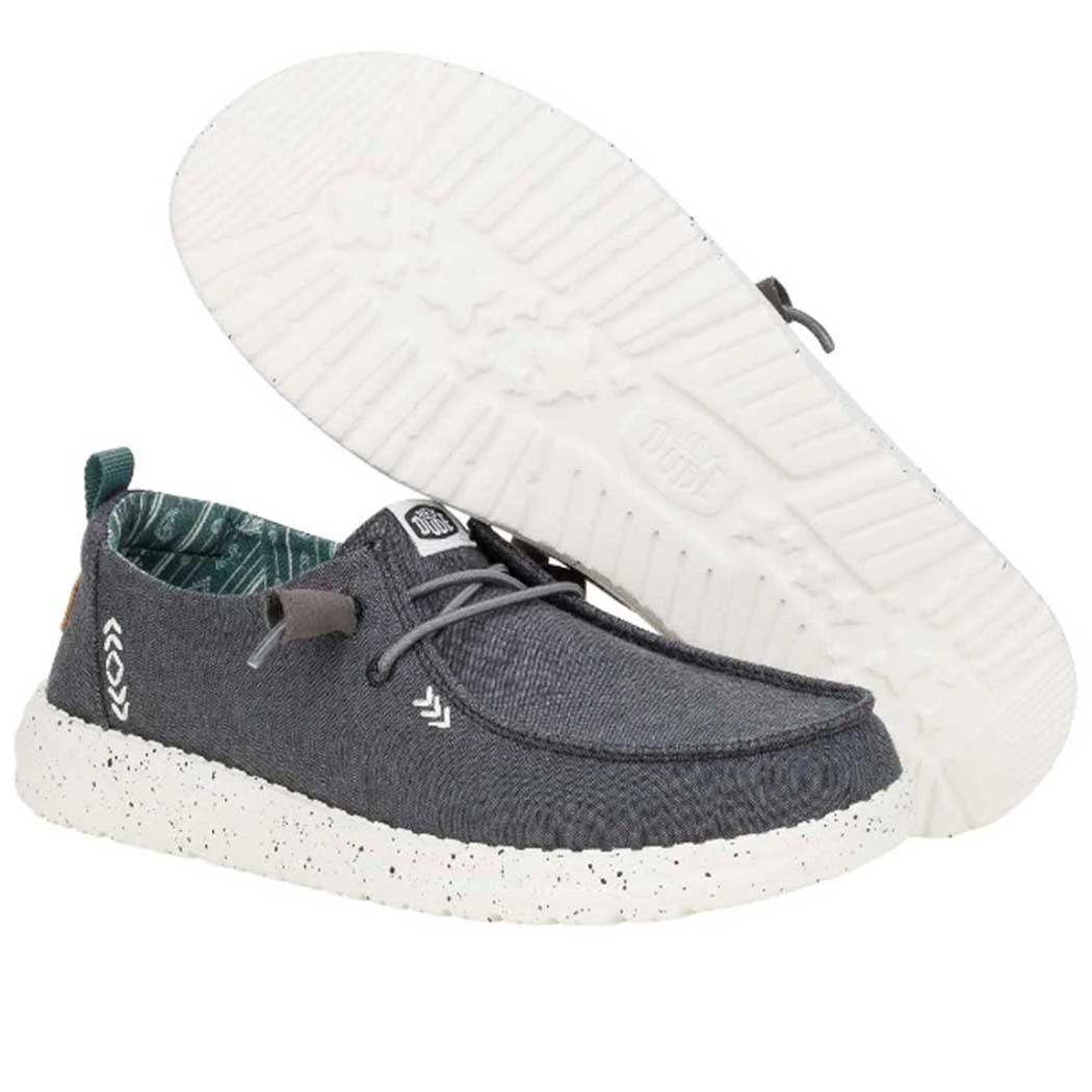 The Wendy Chambray’s textile upper resembles denim but is more lightweight. Elastic laces make the shoes easy to slip on and off. The foam insole adds an extra layer of cushion to the tried-and-true EVA foam outsole.