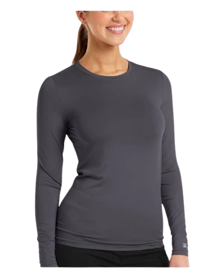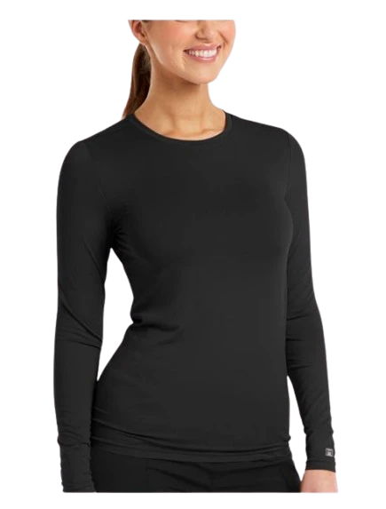 Layer up comfortably in Maevn Matrix Women’s Long Sleeve Underscrub Tee. The women’s round neck long sleeve tee comes with an inner back neck band for added style. With a heat transfer sleeve patch at the sleeve and 4-way stretch to shape the body, you are meant to feel graet all day long.