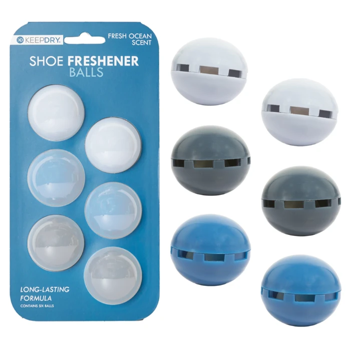 KeepDry Shoe Freshener Balls are the odor neutralizer you need to keep your spaces smelling fresh and clean. Kick those bad odors to the curb and embrace the clean, fresh ocean scent of KeepDry. What are you waiting for? Put that foot odor, shoe smell and funk away with our odor eliminator and live a fresher life. Let’s freshen up your world, one shoe (or car, or bathroom, or closet) at a time!