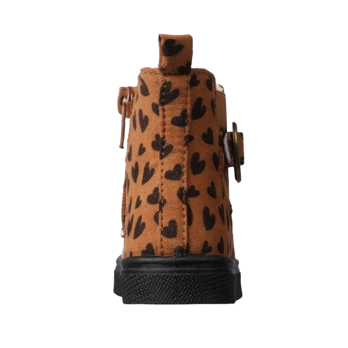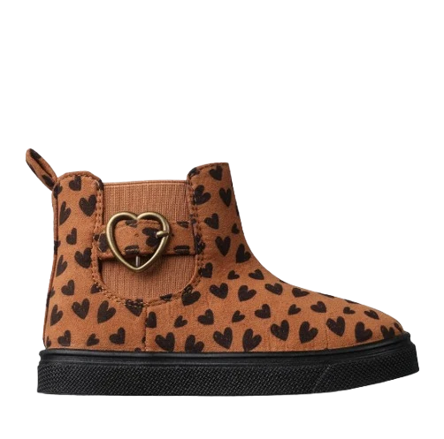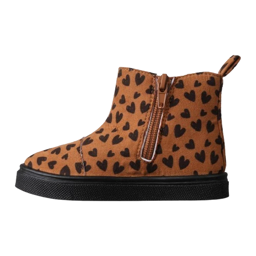 The Colette is your little one’s go-to boot for fall adventures and everyday outings. With a soft PU or textile upper, breathable mesh lining, and an easy-on medial zipper, the Colette blends comfort and function. The Brown Hearts print adds an extra touch of charm that girls will love.