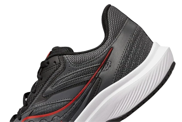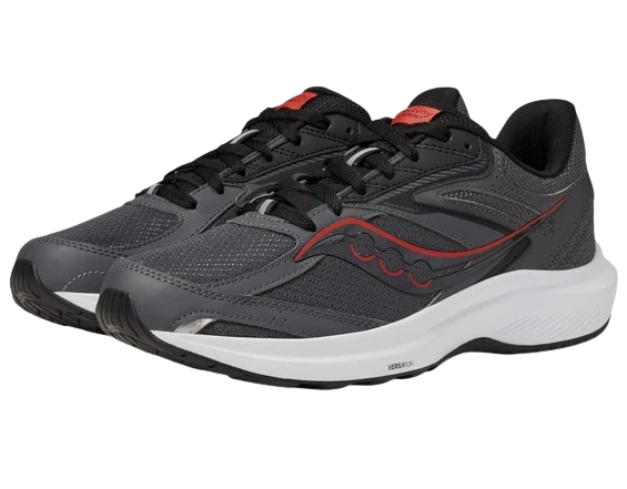 Complete your mellow gym look wearing the Saucony Cohesion 17. This pair of road running sneakers feature round toe design, brand detailing on the tongue, and removable Versarun footbed.