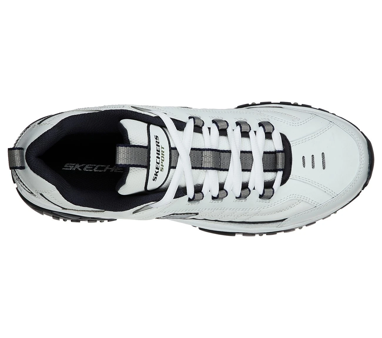 Hit the track with breakneck speed in the SKECHERS Energy – After Burn shoe. Smooth leather upper in a lace up sporty athletic training sneaker with stitching and overlay accents.