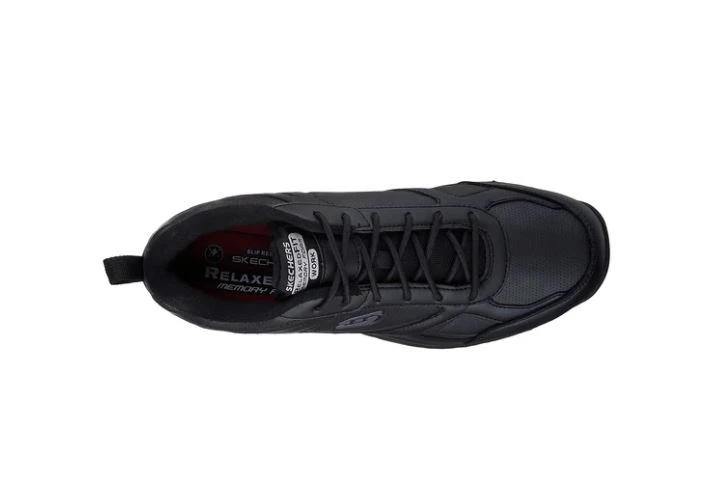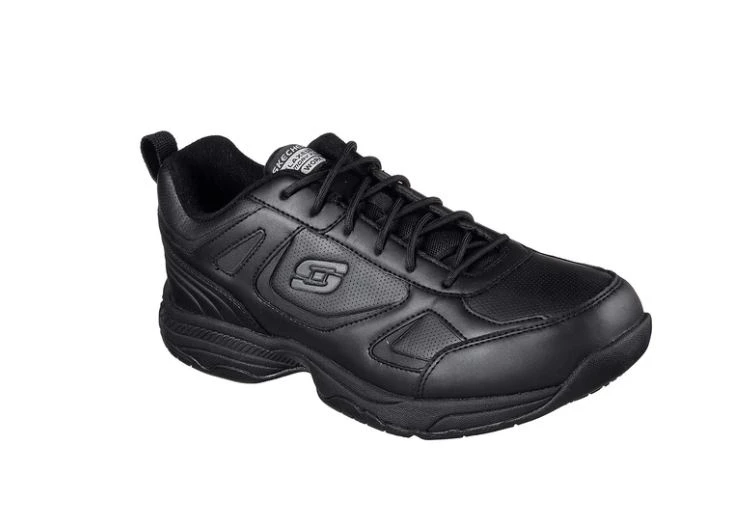 Keep yourself comfortable and safe in Skechers Work Relaxed Fit®: Dighton SR. Smooth leather and synthetic upper on a lace-up sporty casual slip-resistant sneaker with cushioned Memory Foam insole.